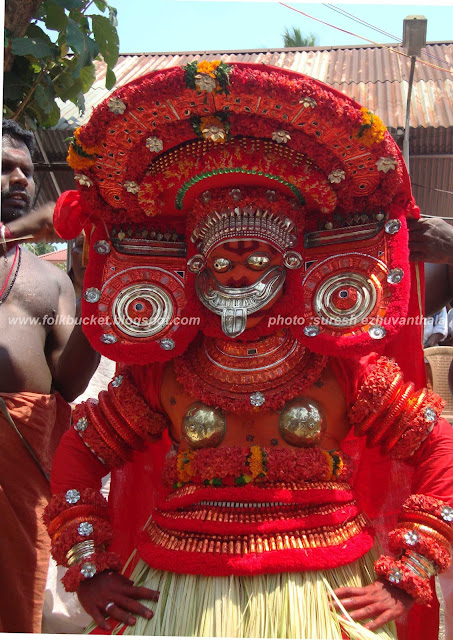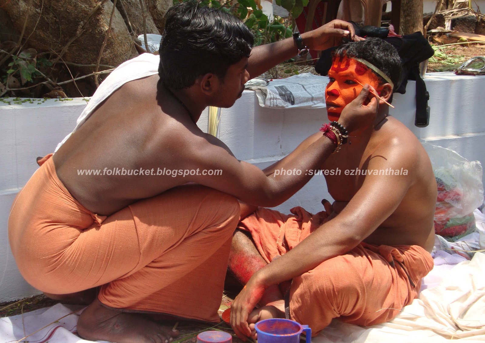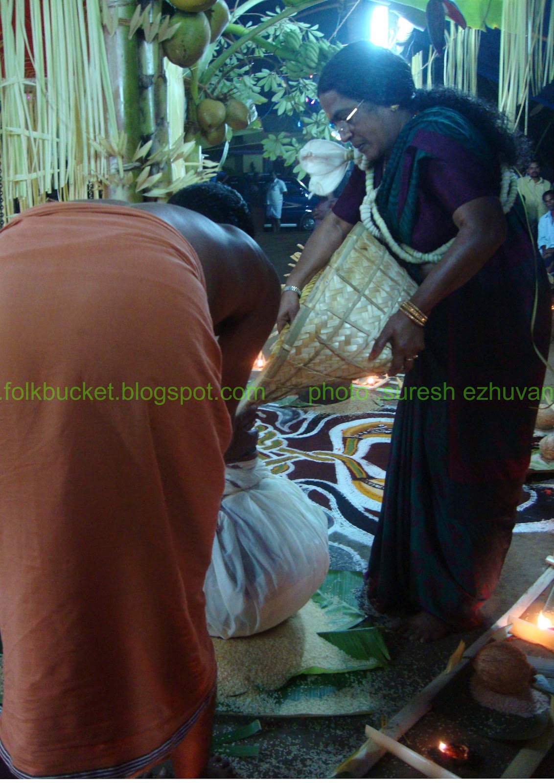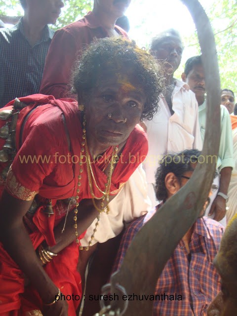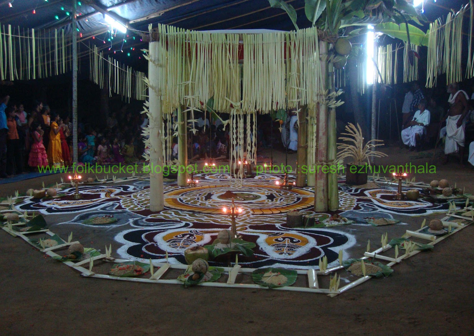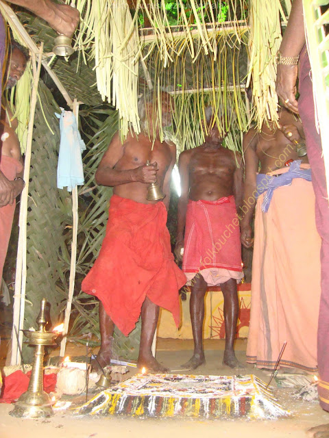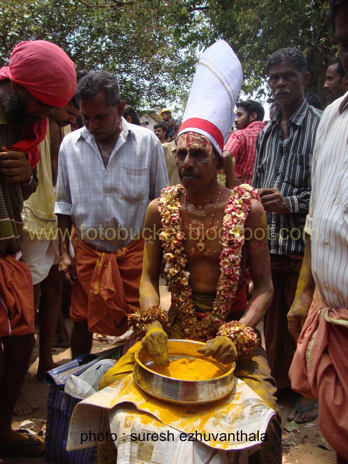 | Kesavan (Folk lore Award winner,belongs PULLUVA Community,lives in KULUKKALLUR,near Pattambi,Palakkad Dt)sitting infront of SANTHANAKKALAM |