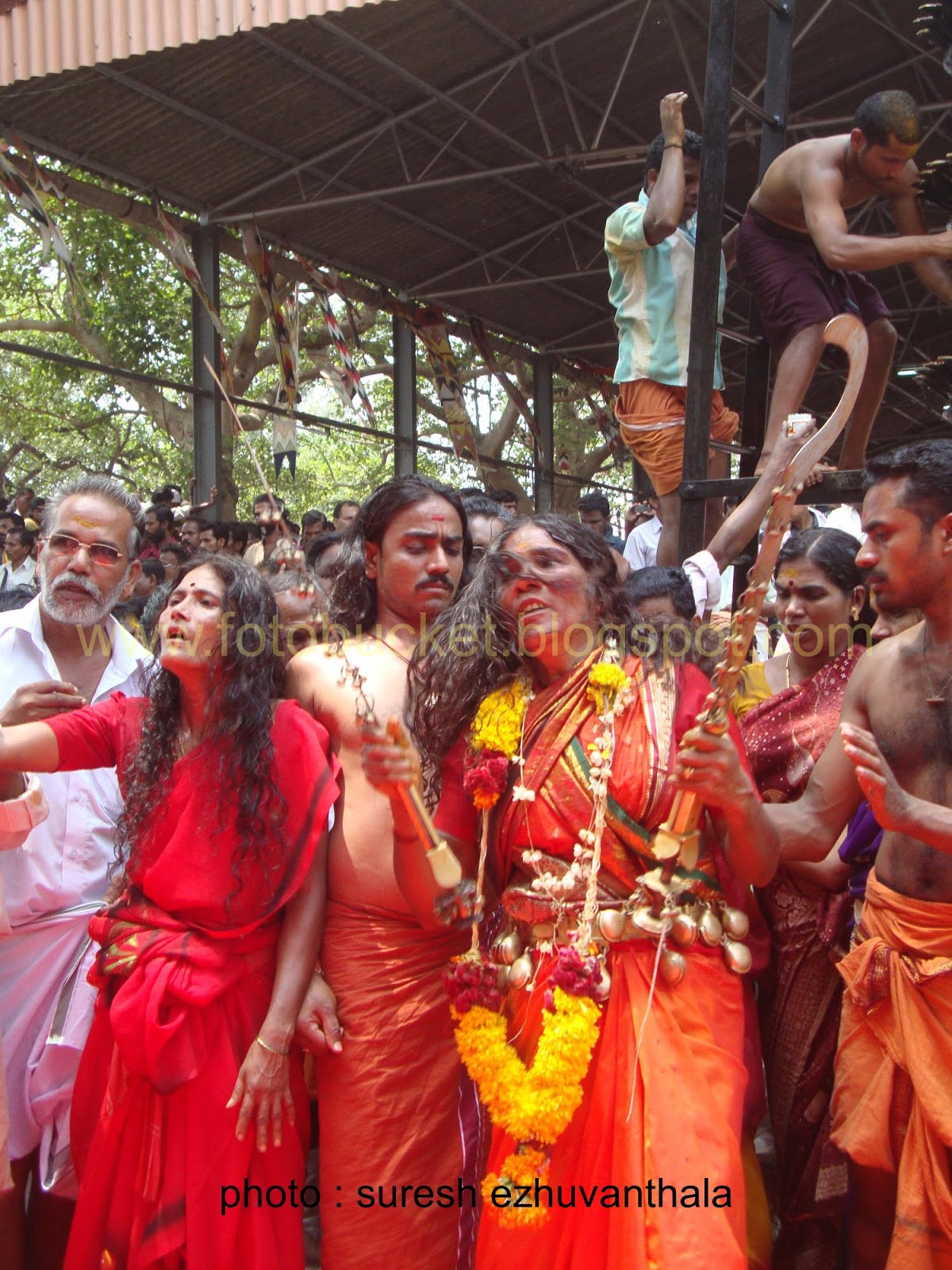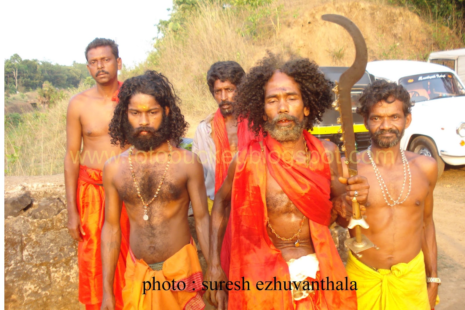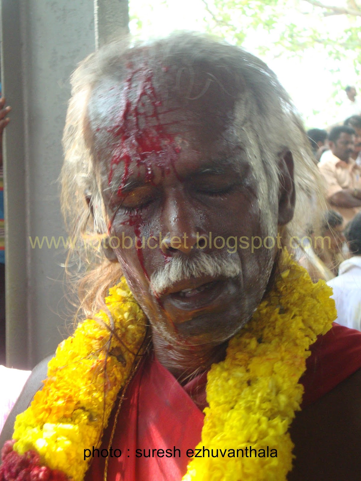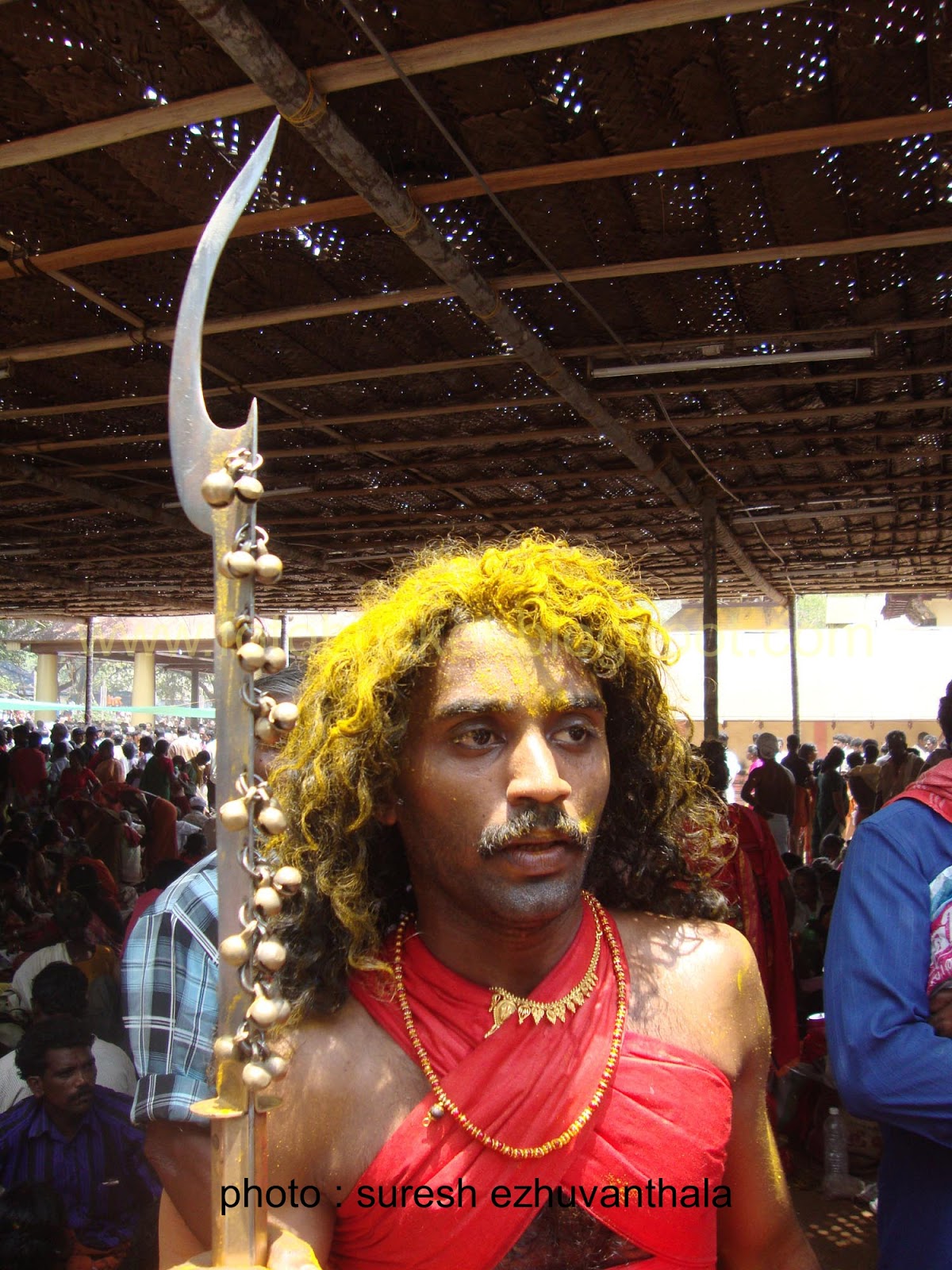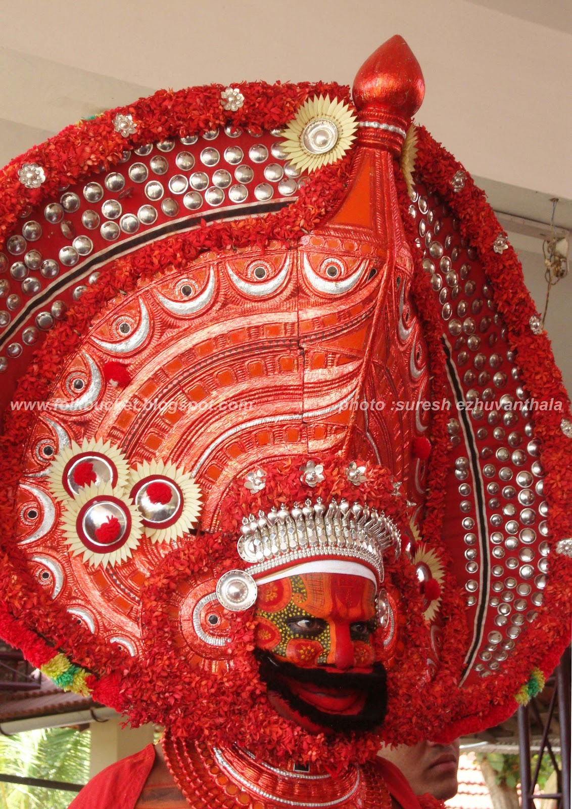 | Kesavan (Folk lore Award winner,belongs PULLUVA Community,lives in KULUKKALLUR,near Pattambi,Palakkad Dt)sitting infront of SANTHANAKKALAM |